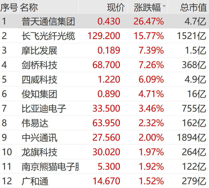 通信设备板块走强