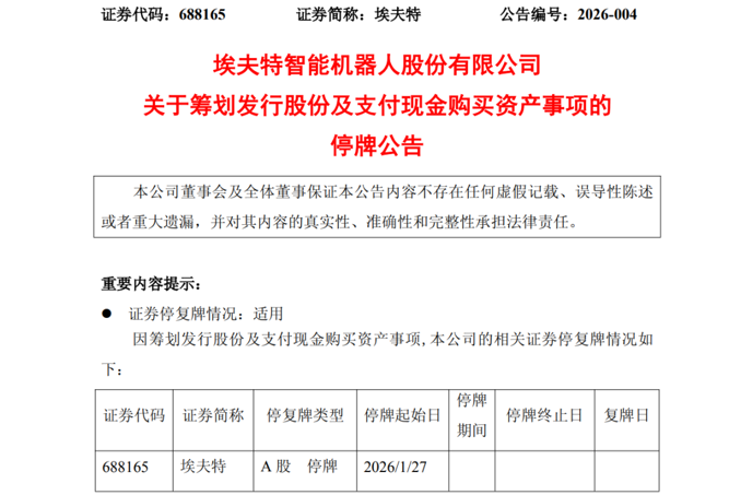 1月26日晚间,埃夫特发布公告称,公司正在筹划以发行股份及支付现金的方式购买盛普股份股权。