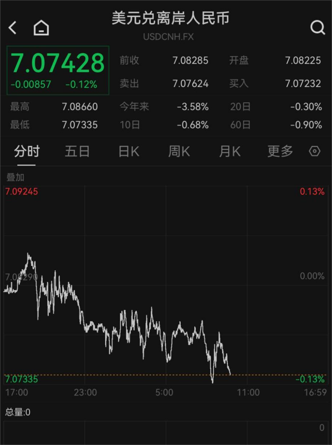 【导读】在岸、离岸双双突破7.08,人民币继续走强