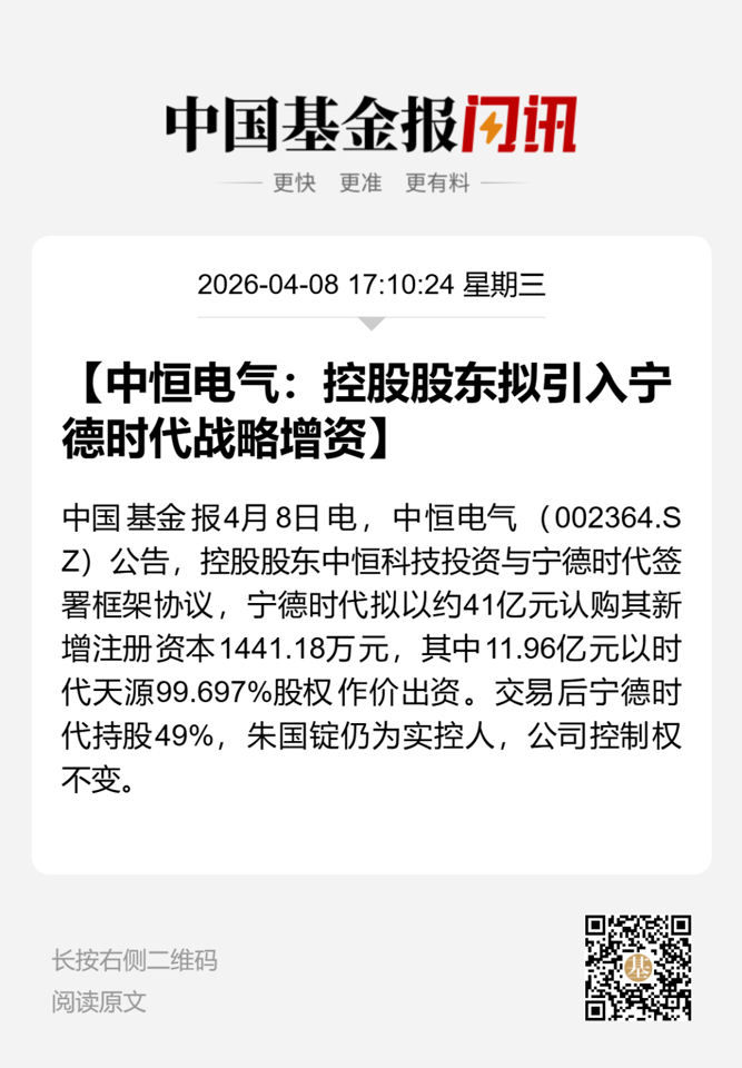 宁德时代拟间接入股中恒电气