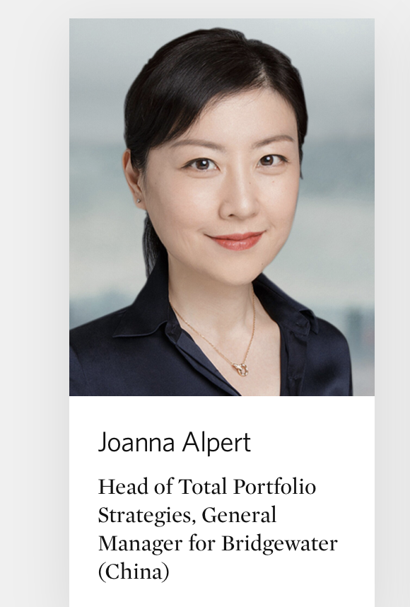 桥水(中国)现任总经理孙悦拥有芝加哥大学的学士学位和哈佛商学院的MBA。孙悦职业生涯始于麦肯锡,担任管理咨询顾问;之后,她曾任职于世界银行;2005年至2008年她任职于桥水。此后,她曾一度离开桥水,选择创业。不过,她后来选择重新加入桥水。2022年,孙悦出任桥水(中国)投资管理有限公司总经理,负责公司战略、研究、投资组合构建与交易;2024年,晋升为桥水的Total Portfolio Strategies部门主管,并且仍保留中国总经理职务。当时,公司表示,桥水(中国)在过去六年培养了一支成熟的中国管理团队,孙悦的晋升不会对桥水(中国)的业务管理及投资运营带来实质影响。