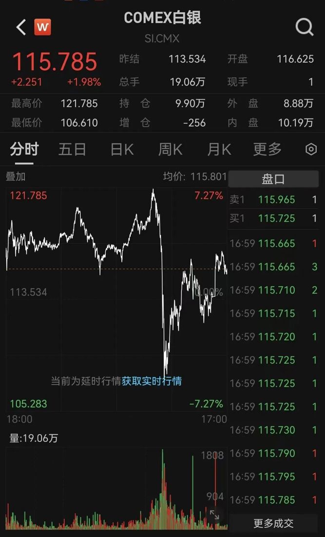 白银价格同步巨震。