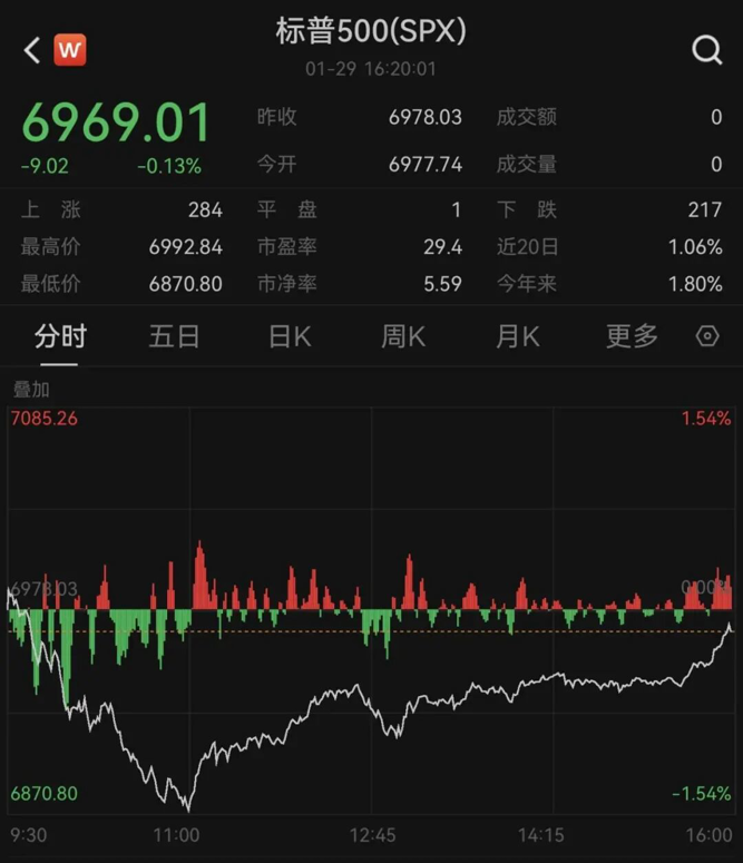 美东时间1月29日(周四),美国三大股指收盘涨跌不一,科技股下挫拖累纳指走低,微软财报引得市场重新审视与人工智能相关的巨额支出。贵金属价格大幅波动,布伦特原油期货自去年7月份以来首次收于每桶70美元上方。