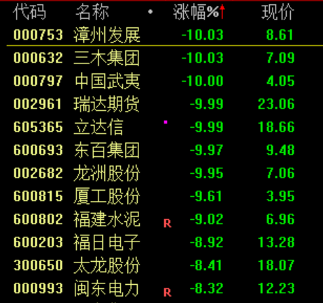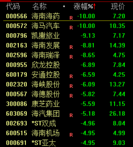 下跌方面,福建、海南等近期热门板块下挫,海马汽车、三木集团等跌停。
