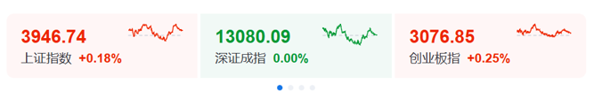 11月19日,沪指全天窄幅震荡,创业板指冲高回落。截至收盘,沪指涨0.18%,深成指不涨不跌,创业板指涨0.25%。