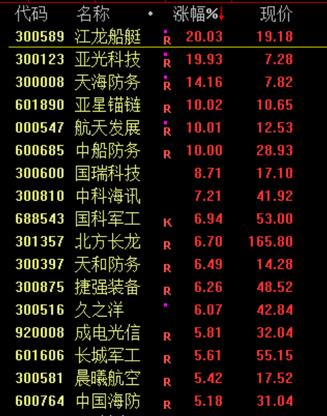 军工板块表现活跃,江龙船艇、中船防务等涨停。