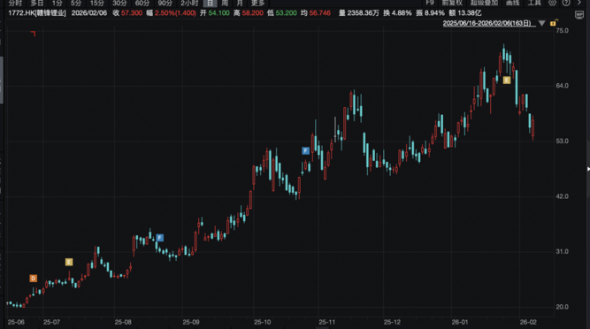 2月6日截至收盘,彩客新能源涨6.59%,中创新航涨5.57%,赣锋锂业涨2.50%。