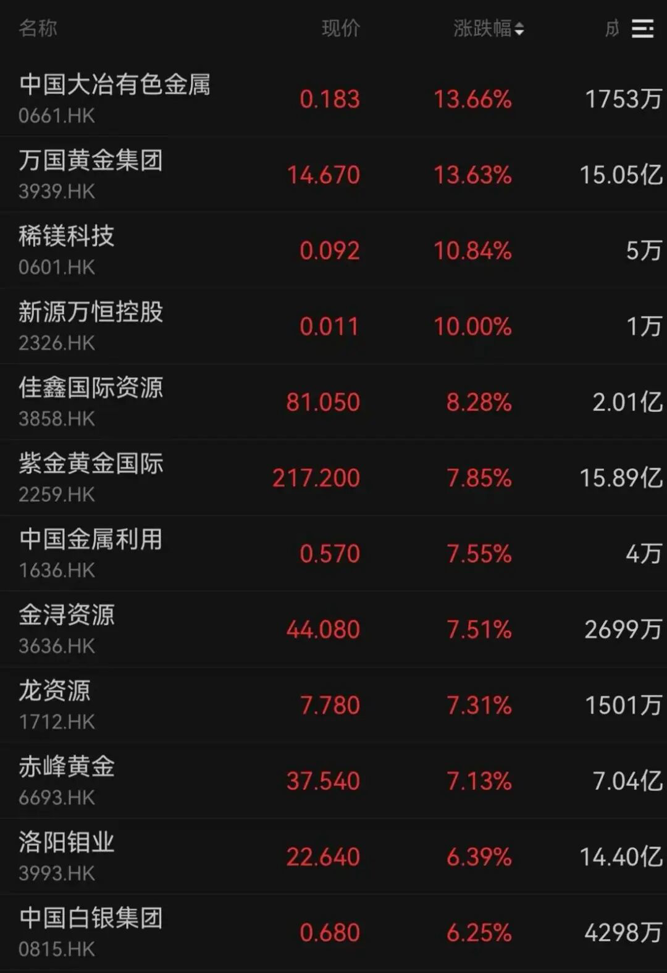 黄金股等有色板块今日反弹