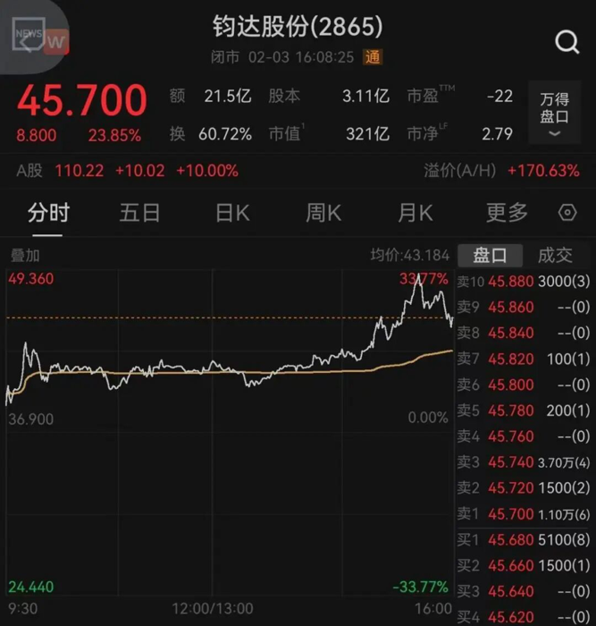 港股商业航天概念股走高,钧达股份涨超23%,亚太卫星、金风科技分别上涨11.50%、5.36%。