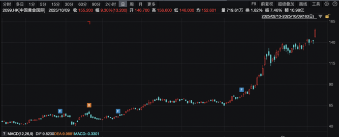 10月9日,中国黄金国际收涨9.30%、紫金矿业收涨5.43%、招金矿业收涨1.11%。