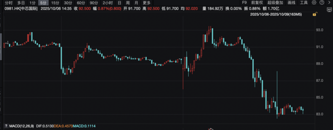 10月9日,港股半导体午后跳水。中芯国际大跌6.70%,成交额高达264.99亿港元。