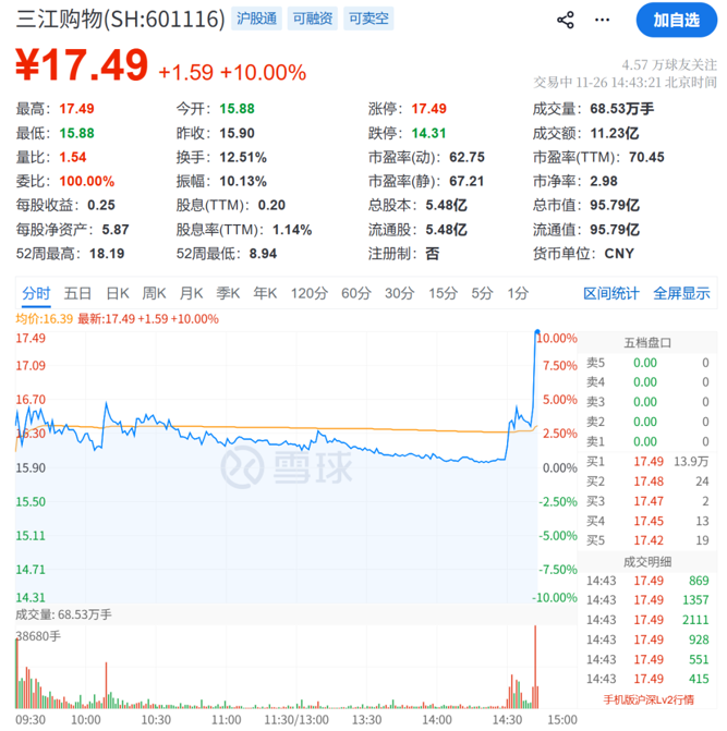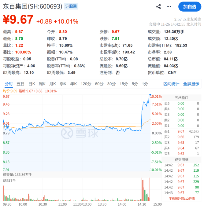 消息公布后,大消费题材短线冲高,海欣食品回封涨停,东百集团、三江购物尾盘拉升涨停,欢乐家、益客食品等多股快速拉升。