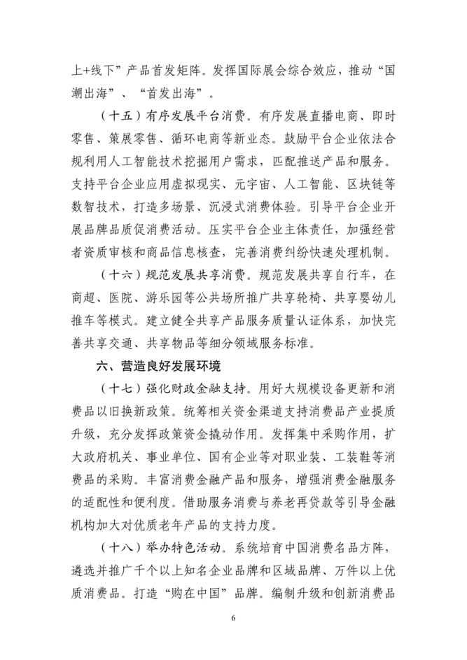 【导读】六部门联合印发《关于增强消费品供需适配性进一步促进消费的实施方案》