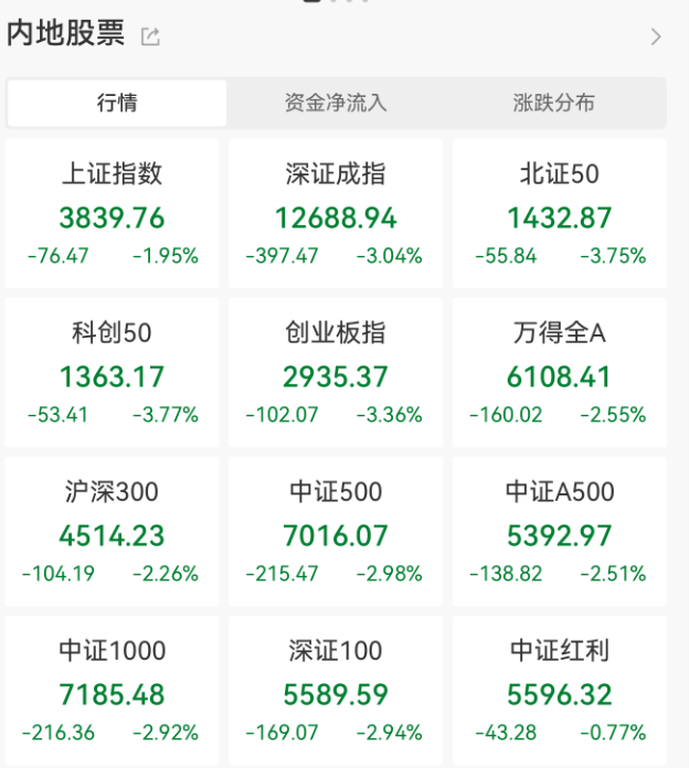A股方面,市场全天低开低走,深成指、创业板指均跌超3%。截至收盘,沪指跌1.95%,深成指跌3.04%,创业板指跌3.36%。