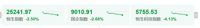 港股方面,恒生指数跌2.5%,恒生科技指数跌超4%!