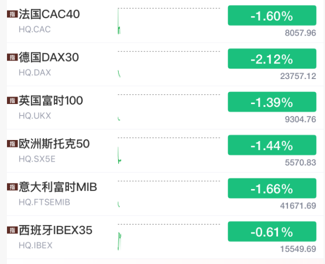 美股三大股指期货延续跌势,纳斯达克100指数期货跌1.5%,标普500指数期货跌1.4%,道指期货跌1%。