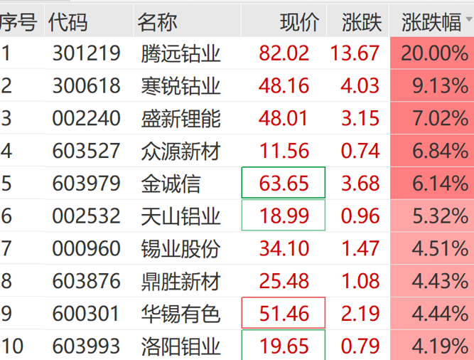 能源金属板块走高