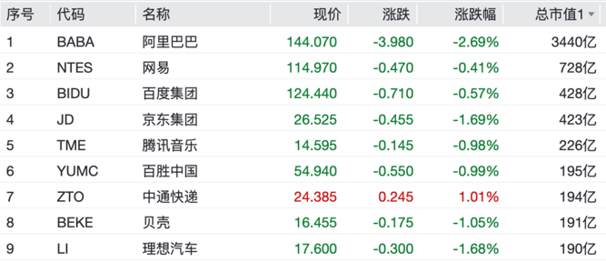 中概股多数下跌,纳斯达克中国金龙指数跌1.81%。热门中概股方面,阿里巴巴跌2.69%,京东集团、贝壳、理想汽车均跌逾1%。