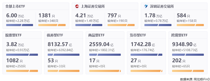 稳步扩容的背后是居民财富管理需求的持续释放,投资者借权益基金“入市”趋势明显,其中被动投资规模赶超主动,ETF产品规模和数量“双提速”。根据iFinD数据,截至2025年12月29日,全市场ETF资产总规模达到6.00万亿元,较年初增长2.28万亿元,股票型ETF达到3.82万亿元,较年初增长9300亿元。