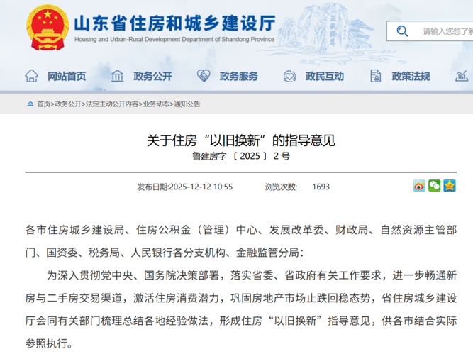 【导读】山东发布《关于住房“以旧换新”的指导意见》,激活住房消费潜力