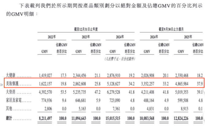 其中,美妆个护领域GMV增长明显。2022年至2024年,极易科技美妆个护类目GMV从16.22亿元增至51.28亿元,占总GMV的比例从19.8%提升至34.2%。2025年前三季度,美妆个护类目GMV进一步增至48.66亿元,几乎占据了整体业务的四成。