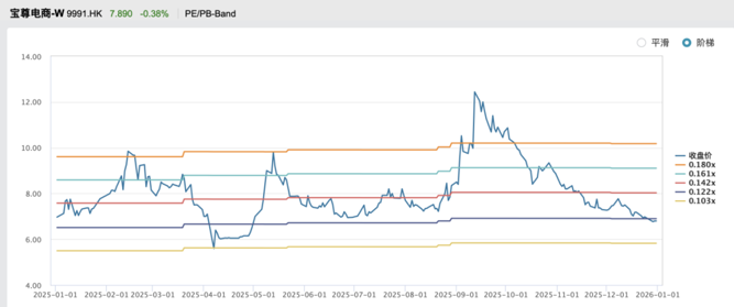 不过,这一模式似乎仍未得到市场的认可。2025年,宝尊电商的股价在7港元~13港元区间徘徊,较其2020年上市时82.9港元的发行价已大幅下跌。2023年、2024年宝尊电商的市销率(P/S TTM)仅为0.14倍。