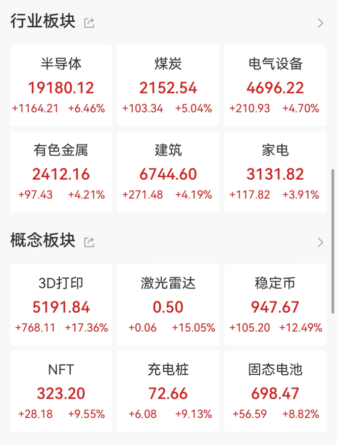 昨夜今晨,美股三大股指大幅收涨。截至收盘,道琼斯工业平均指数涨2.47%,报50115.67点;标普500指数涨1.97%,报6932.3点;纳斯达克综合指数涨2.18%,报23031.21点。