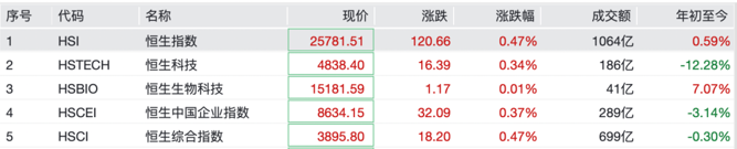 港股市场同样集体上涨。截至发稿,恒生指数涨0.47%,恒生科技指数涨0.34%,恒生生物科技涨0.01%。个股方面,阿里巴巴、中国银行、中国人寿、中国平安、紫金矿业、洛阳钼业、中芯国际等纷纷上涨。
