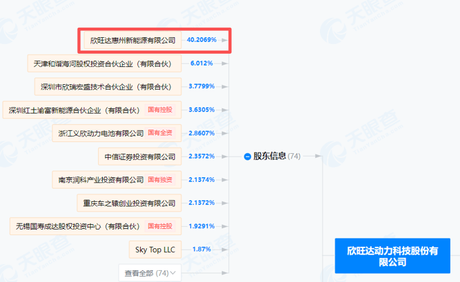 欣旺达动力是欣旺达布局动力电池产业的重要载体。天眼查显示,欣旺达持有欣旺达动力40.21%的股份。