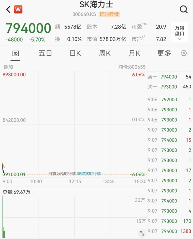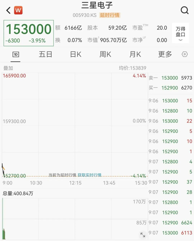 个股方面,三星电子、SK海力士追随隔夜美股跌势,开盘大跌。