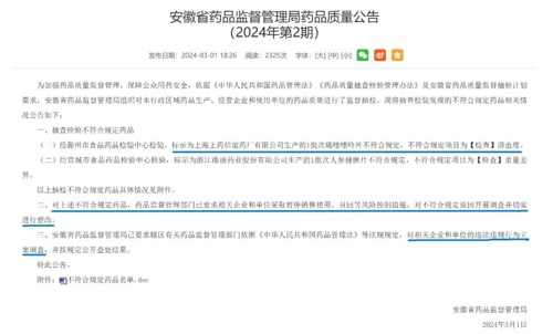 对此,安徽省相关药监部门已要求相关企业和单位采取暂停销售使用、召回等风险控制措施,对不符合规定原因开展调查并切实进行整改。同时,安徽省药监局已要求辖区有关药品监督管理部门,依据《药品管理法》等法规规定,对相关企业和单位的违法违规行为立案调查,并按规定公开查处结果。