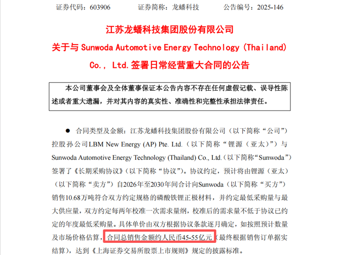 【导读】龙蟠科技再签电池材料大单,交易对方是欣旺达位于泰国子公司