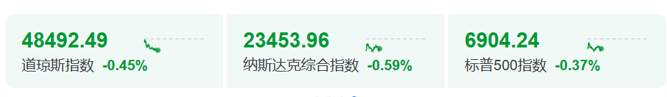 29日晚间,美股三大指数下跌。道指跌超200点,纳指跌约0.6%,标普500指数跌约0.4%。