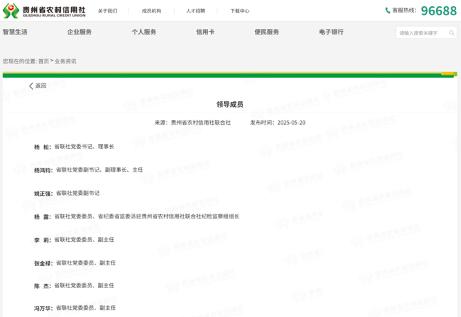 此外,李莉、张金禄、陈杰、冯万华亦任职于贵州省联社系统,目前均为该省联社党委委员、副主任。