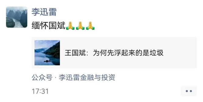 天风证券研究所所长赵晓光发文称:“惊闻我的入行老领导、恩师猝然离世,心情顿时阴霾。国斌总是充满智慧、充满能量的大师级投资大师和管理大师,想起之前和国斌总讨论小米、讨论人工智能、讨论降血糖,想起入行时国斌总给我的教导和培养读书和思考的习惯,想起天风研究所成立时给我们的培训,策略会给我们传经授道,悲从中来,天妒英才!”