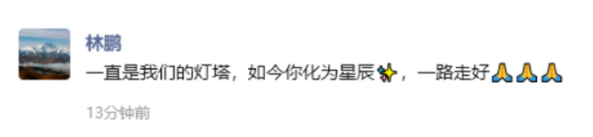 百亿私募和谐汇一的董事长兼总经理,东方红资管原副总经理兼公募权益投资部总经理林鹏发文哀悼:“一直是我们的灯塔,如今你化为星辰,一路走好。”