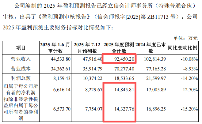 招股意向书显示,受马士基系客户的供应商结构变化、奔驰系客户终端业务需求下降等因素影响,世盟股份预计其2025年全年的营业收入为9.25亿元,同比下降10.08%;归母净利润为1.48亿元,同比下降12.70%。