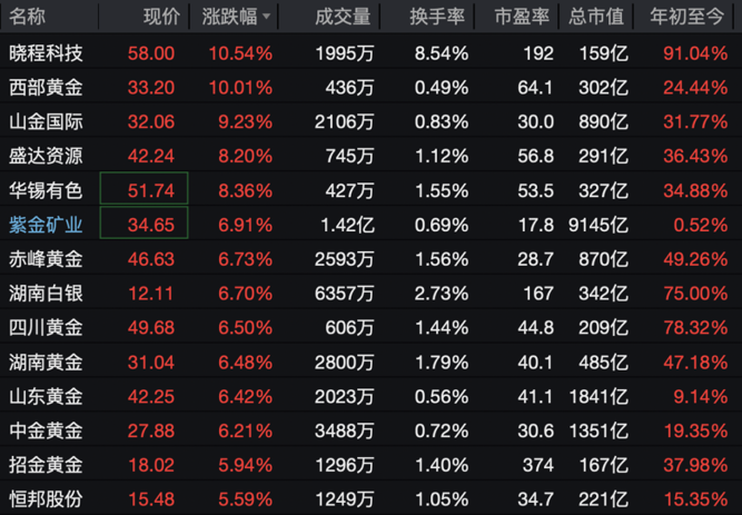 贵金属概念股快速拉升,西部黄金涨停,晓程科技、山金国际、盛达资源等跟涨。