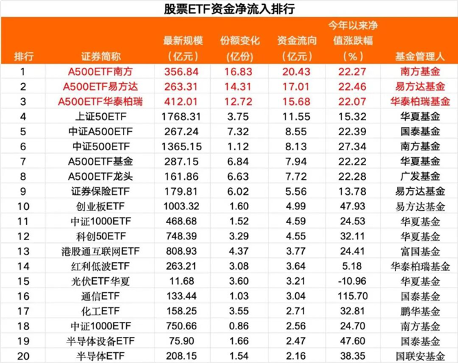 数据显示,头部基金公司旗下部分ETF净流入步伐持续。