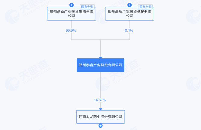 根据公告,郑州高新产业投资集团有限公司和其全资子公司郑州高新产业投资基金有限公司分别持有泰容产投99.90%、0.10%股份。郑州高新投资控股集团有限公司持有郑州高新产业投资集团有限公司100%股份。郑州高新技术产业开发区管委会持有郑州高新投资控股集团有限公司98.17%股份,为太龙药业的实际控制人。