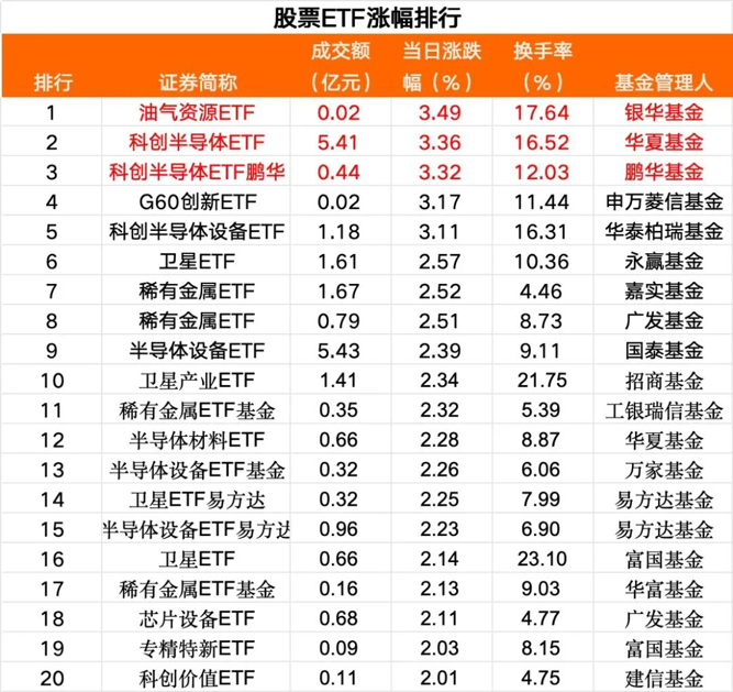 半导体、卫星、稀有金属ETF领涨