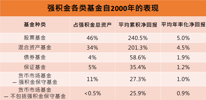 香港积金局主席刘麦嘉轩于2025年12月发表网志表示,香港强积金制度实施以来,截至2025年10月底,各类成份基金的年化收益率均录得正回报,合计占强积金总资产八成的股票基金和混合资产基金,分别录得240%及200%的累积净回报,以及5%及4.5%年化净回报率,跑赢同期1.8%的年化通胀率。