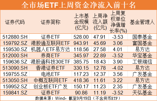 证券ETF、港股通互联网ETF等受资金青睐