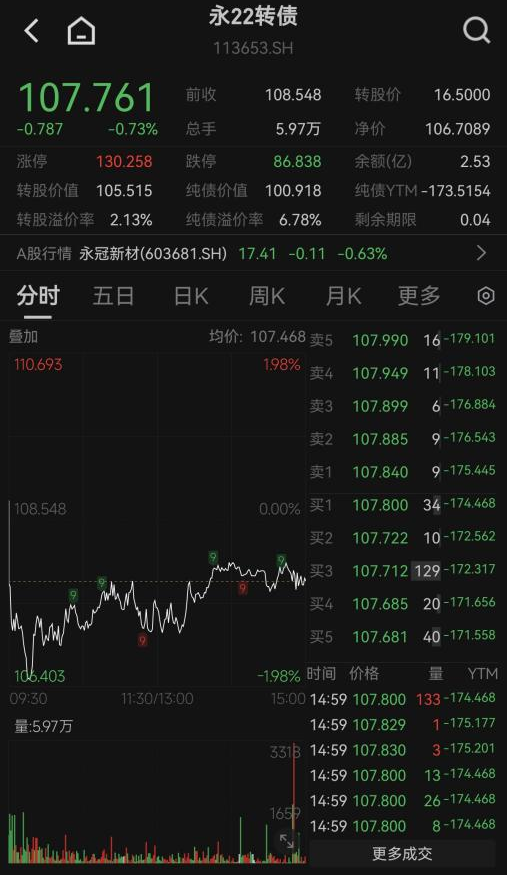 据集思录数据,永22转债、亿纬转债将在4月中下旬停止交易并强制赎回,赎回价格均为100元出头。截至4月9日收盘,永22转债、亿纬转债的价格分别为107.761元和129.088元。