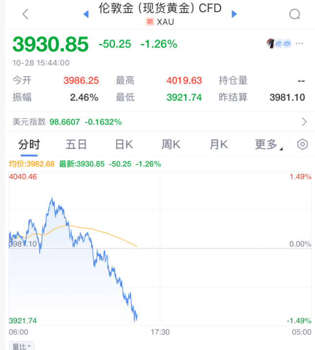 在此前的猛烈上涨后,金价已从上周一创下的每盎司4380美元上方的纪录高位明显回落。今年以来金价仍上涨逾50%,央行买盘以及所谓的“资产稀释交易”(投资者为防范失控的财政赤字而回避主权债与法币)为金市提供支撑,并吸引了散户投资者入场。