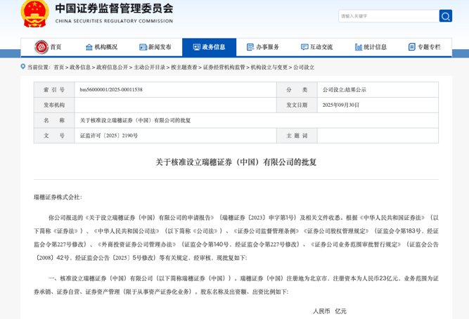 9月30日,中国证监会正式发布批复,核准设立瑞穗证券(中国)有限公司(以下简称瑞穗证券(中国))。这是国内第6家外资独资证券公司,也是首家日资独资券商。