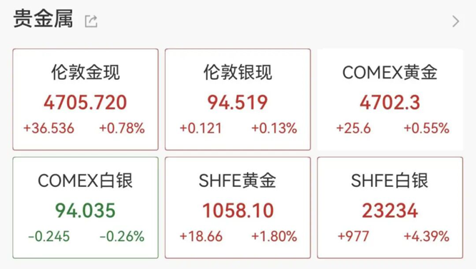 1月20日,现货黄金突破4700美元/盎司大关,再创历史新高。昨日,COMEX白银期货涨6.49%,再创新高。