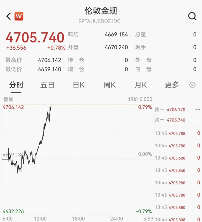 【导读】现货黄金突破4700美元/盎司,再创历史新高
