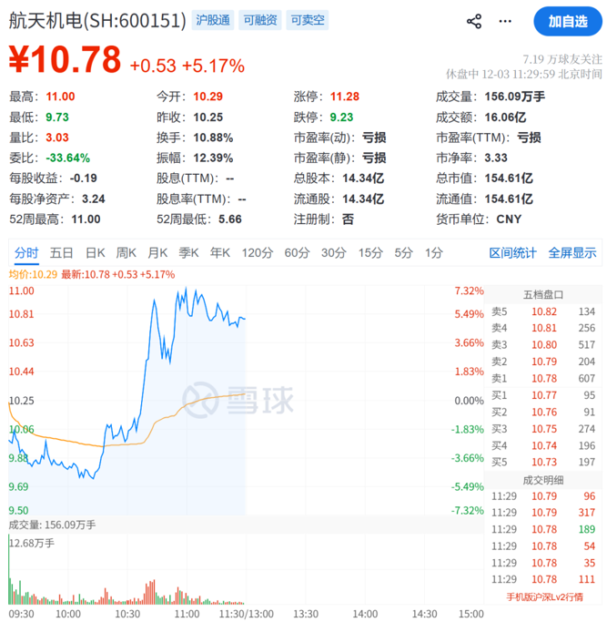 此外,航天智装、航天机电等上午同步拉升,截至午间收盘,均有明显涨幅。