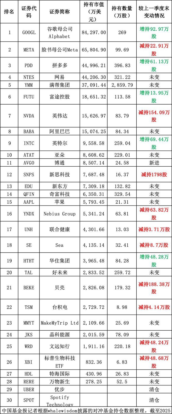 截至2025年四季度末,景林香港公司在美股市场的前十大重仓股分别是谷歌母公司Alphabet、脸书母公司Meta、拼多多、网易、满帮集团、富途控股、英伟达、阿里巴巴、英特尔、亚朵,占其美股总持仓的比例为82.85%。